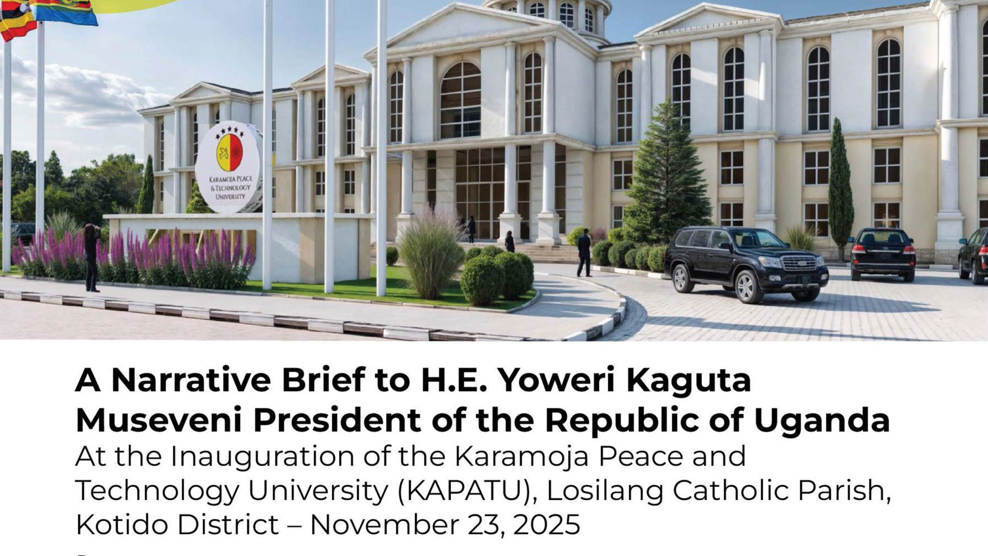 The Narrative Brief presented to H.E. the President of the Republic of Uganda and KAPATU Founding Chancellor, Gen. Yoweri Kaguta Museveni is both a historical reflection and a declaration of transformation. It chronicles the long, complex, and redemptive journey of the Karamojong people from cultural resistance of formal education, symbolized by the rejection and ‘burying of the pen’ in Akwapowa-Nadunget-Matheniko of Moroto in 1911 and Lomukura-Losilang-Jie of Kotido in 1942, to intellectual renaissance of embracing formal education symbolized by the ‘Unearthing the Pen’ in November 1995, culminating in the November 2025, establishment of the Karamoja Peace and Technology University (KAPATU) — a monumental institution that symbolizes the triumph of peace, education, and national unity under Your Excellency’s visionary leadership.